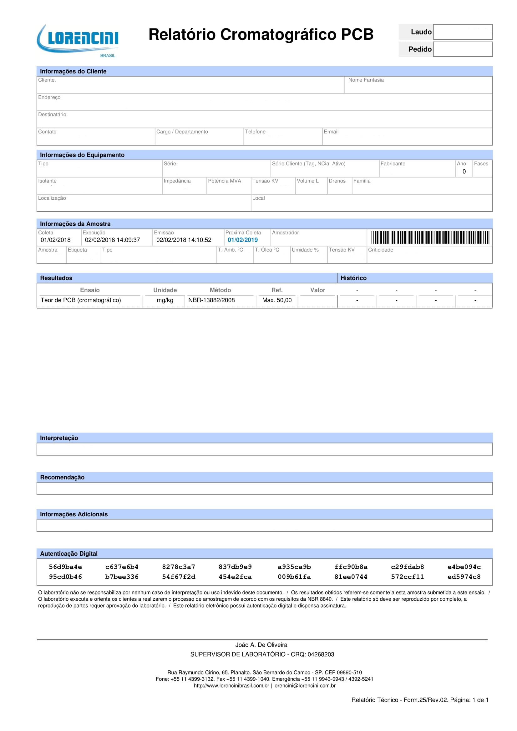 Relatório Cromatográfico PCB