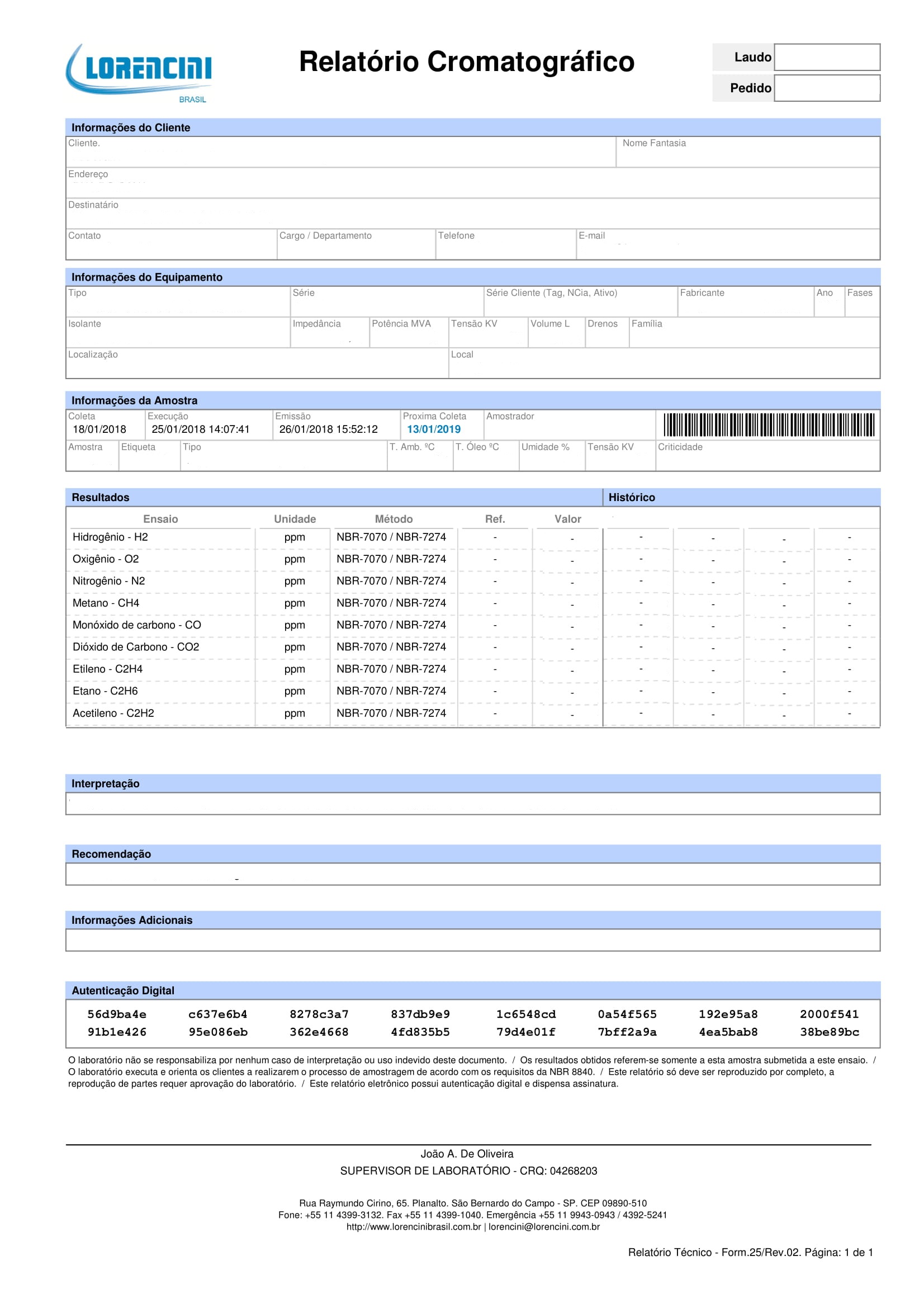 Relatório Cromatográfico