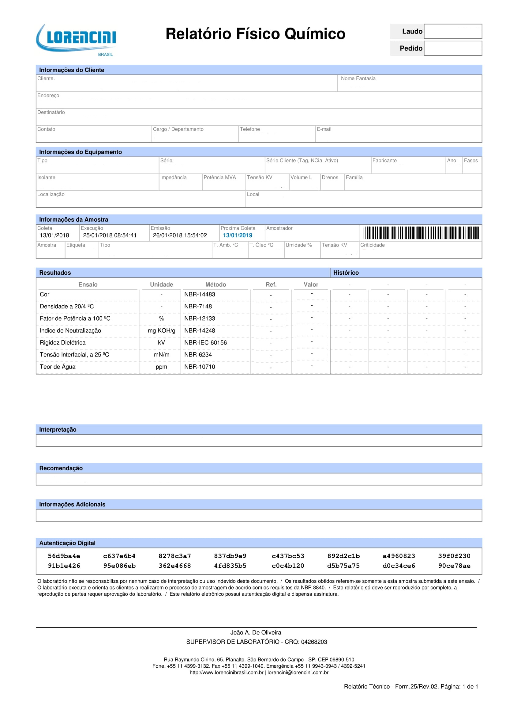 Relatório Físico Químico